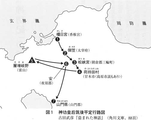 日本書紀巻九の伝えるところによれば、仲哀天皇・神功皇后は熊襲征伐のため九州に赴いた。