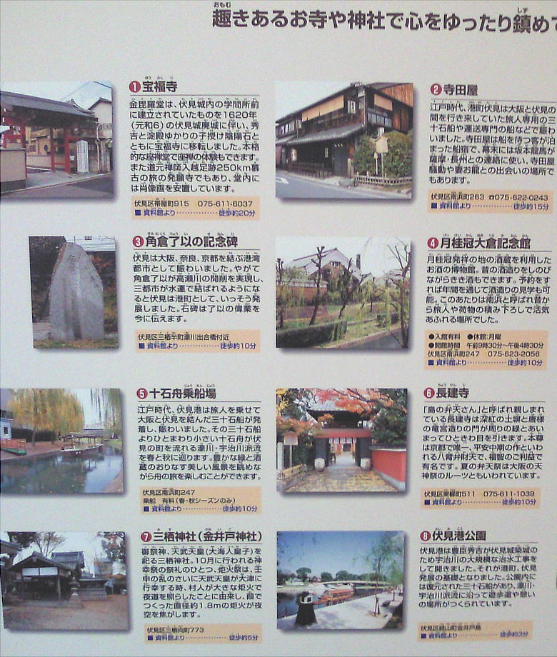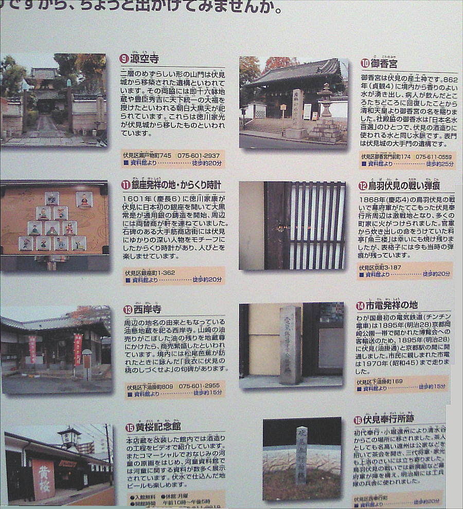 醸造関連遺産」として、「松本酒造酒蔵」、「月桂冠旧本社」、「月桂冠昭和蔵」、「旧大倉酒造研究所」、「内蔵酒造場」、「月