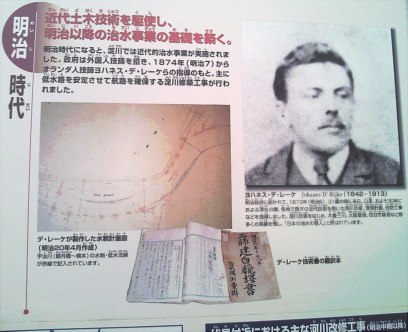 デ・レーケが大阪の河川管理に果たした役割は大きい。淀川の堤防工事にも多大の貢献をしている。