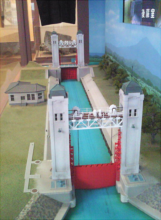 動させる設備である。この模型では、実際に船が行き来する様子が分かるようにしてある。昭和4年なので、80年前に完成し
