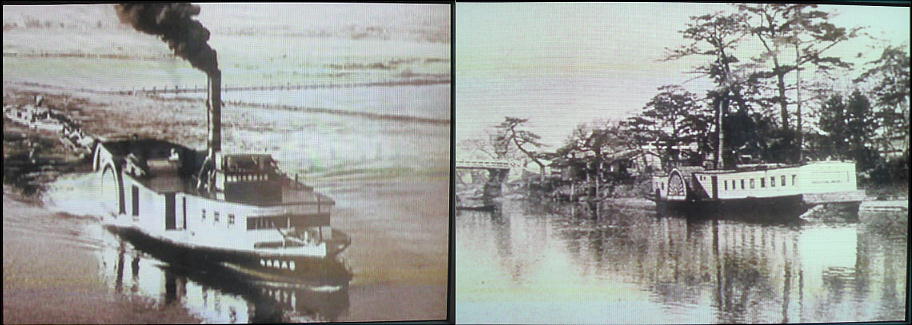 治川には三十石船などに代わって蒸気船(外輪船)が運航された。