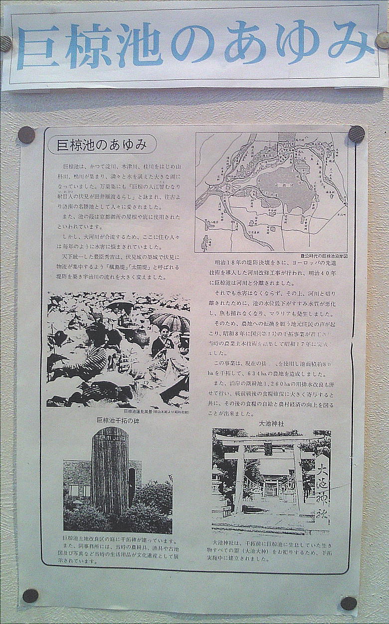 があった。我が歴史倶楽部の西本さんはいま高槻に住んでいるが、御母堂はこの巨椋池からレンコンを引いてきていたそうであ