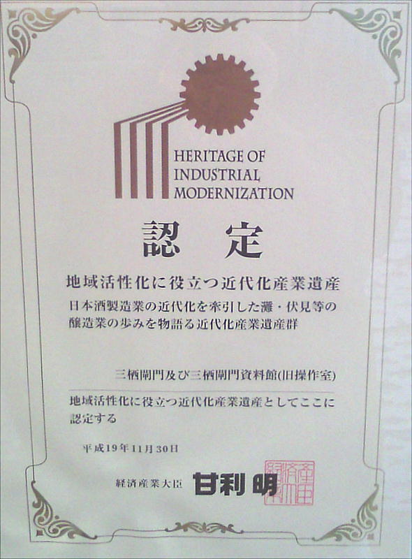 桂冠大倉記念館」、同館所蔵の「伏見の酒造用具」が指定され、「伏見の淀川舟運関連遺産」として、「三栖閘門(みすこうもん)」、