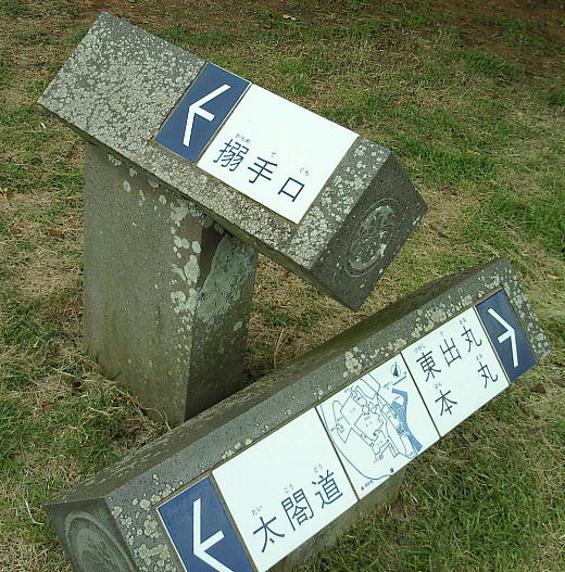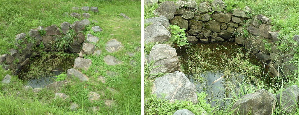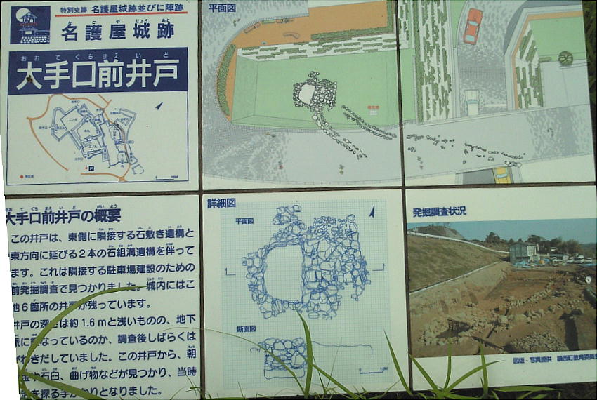 駐車場に車を入れて歩き出すと、大手口前の井戸跡があった。駐車場を造る時に出土したそうだ。