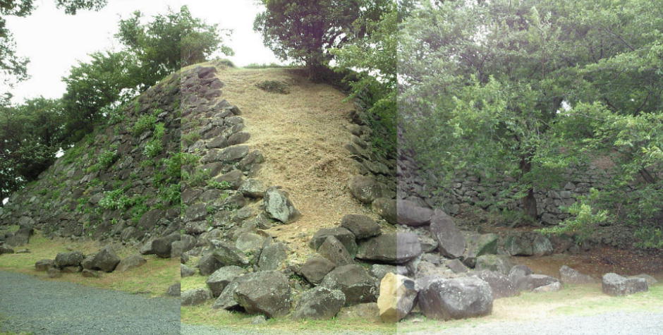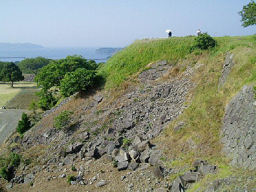石垣も江戸時代の島原の乱の後に一揆などの立て篭もりを防ぐ目的で要所が破却され、現在は部分が残る。歴史上人為的に破却された