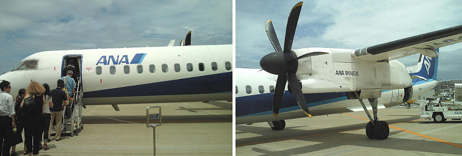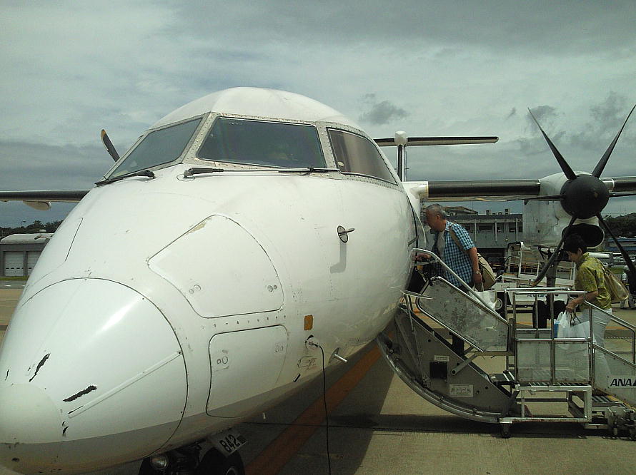大阪への帰りはいつものボンバルディア。「いつか落ちるぞ」という口の悪い友人もいるが、私はこのプロペラ機が好きで、努めてこの