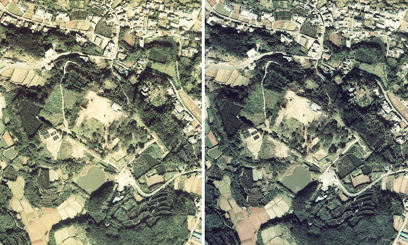 名護屋城のステレオ空中写真(1977年)国土交通省 国土画像情報(カラー空中写真)を元に作成。