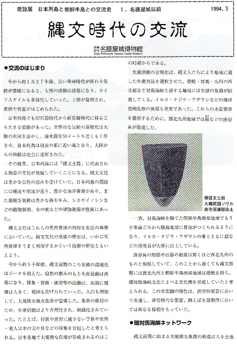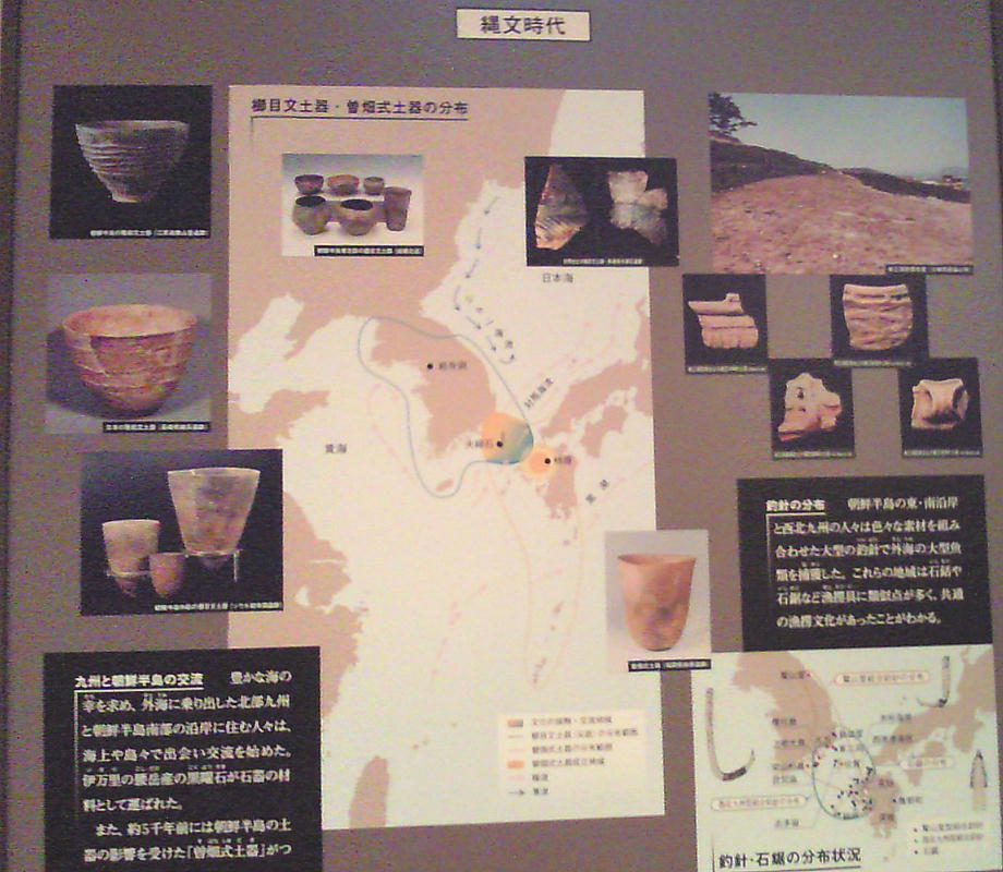 縄文時代には、日本列島と朝鮮半島との交流も活発になったようで、朝鮮半島の「櫛目文土器」の影響を受けた「曽畑(そばた)式土