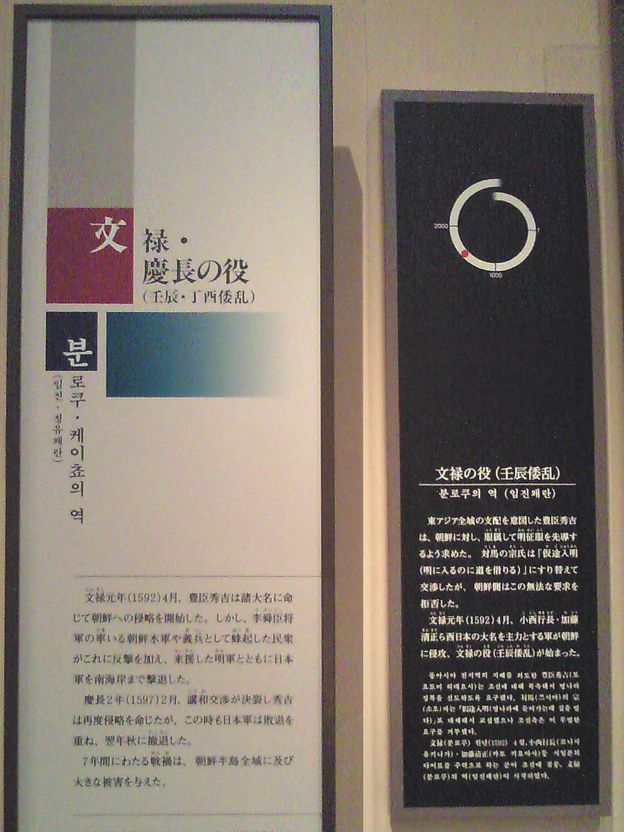 文禄・慶長の役(壬辰・丁酉倭乱)に際して築かれた名護屋城は、総面積17万平方mを誇る大規模なもので、ここに天守閣を始め、