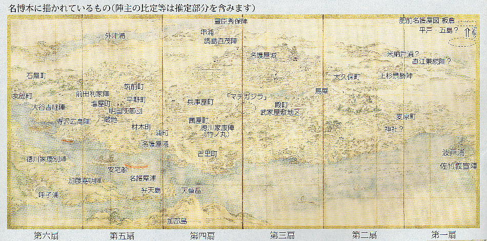多数の櫓(やぐら)や御殿が建ち並んでいた。しかし当時の姿を具体的に残す資料は、「肥前名護屋城図屏風」のみで、現在進めら