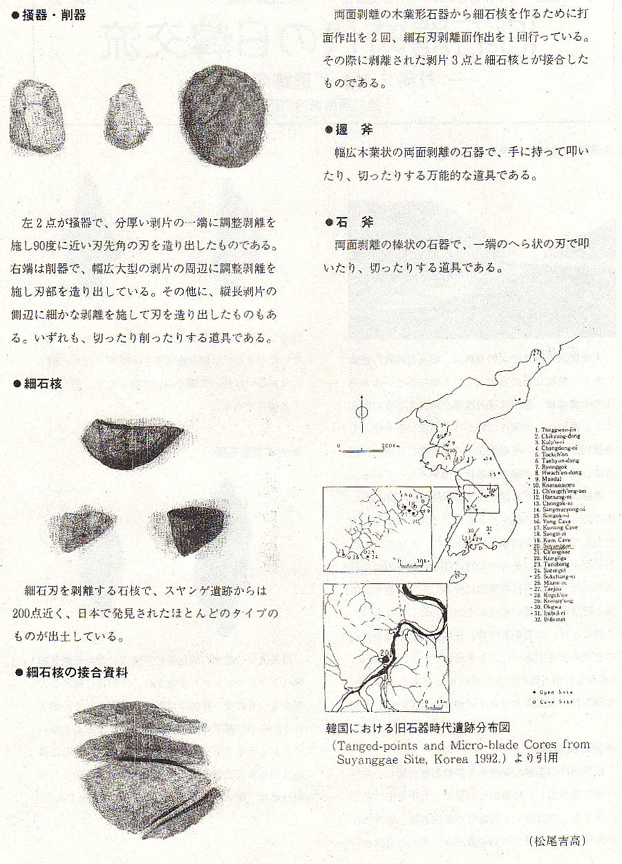 器」が九州から沖縄にかけて分布する一方、石器の素材となる腰岳(こしだけ:佐賀県伊万里市)産の黒曜石が朝鮮半島南西部の遺跡