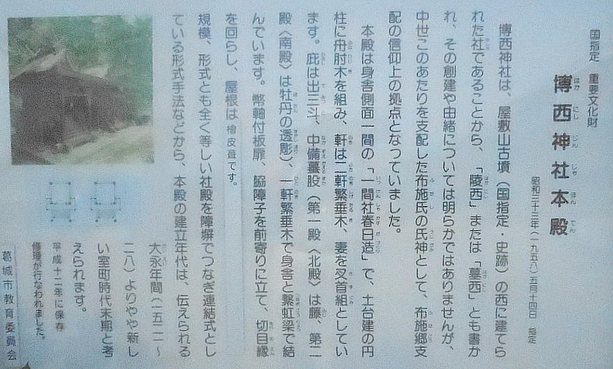 説 明 : 屋敷山古墳の西にあることから「陵西」「墓西」とも書かれた。中世、この地域を支配していた「布施氏」の氏神という。