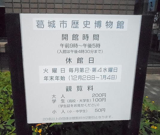 開館は9:00〜17:00(但し、入館は16:30まで)、観覧料200円。20名以上の団体は、観覧料が2割引。