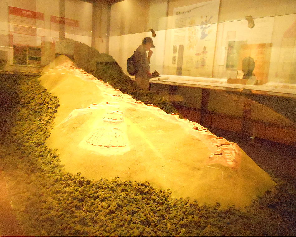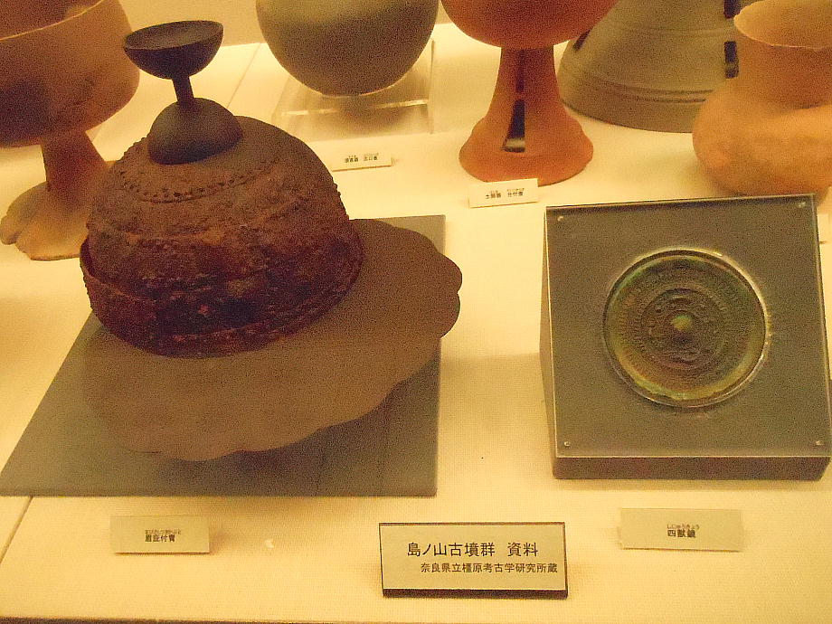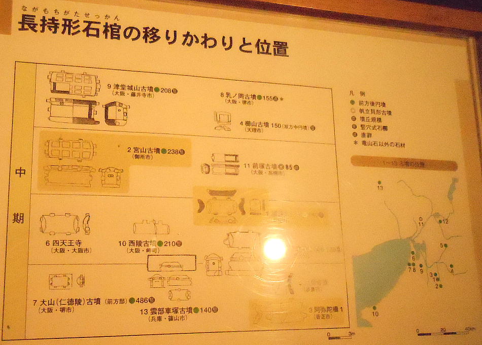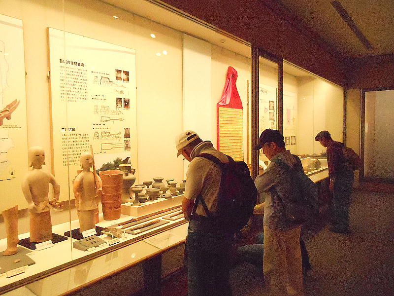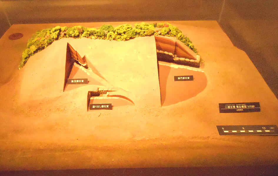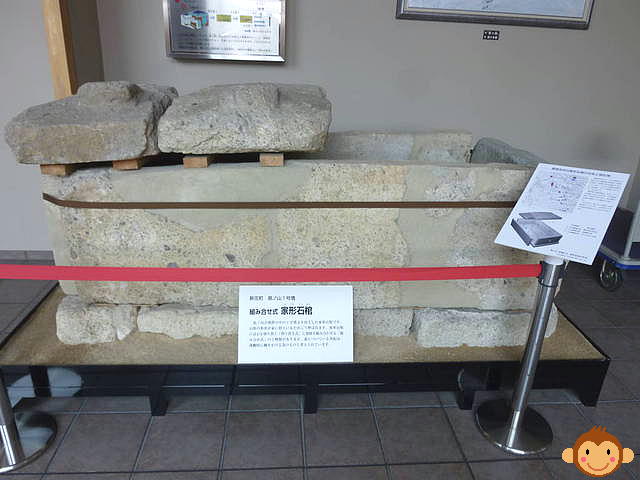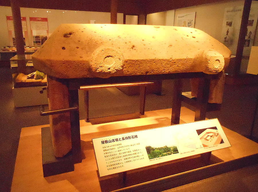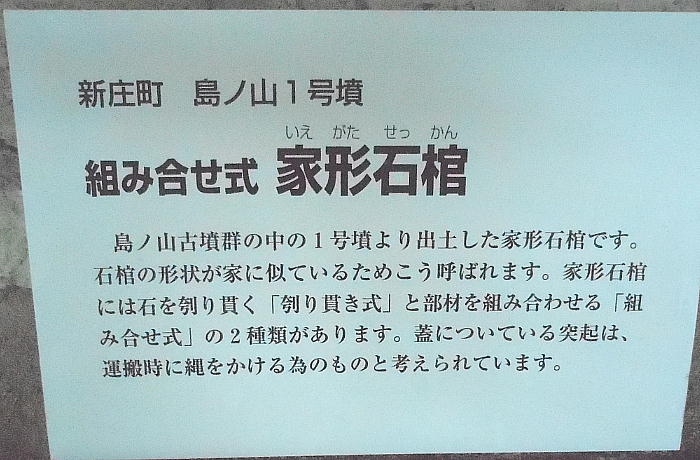 日。資料館に入ると、正面に「島ノ山1号墳」から出土した実物大の組合せ式「家形石棺」が置かれ、また、館内に種々