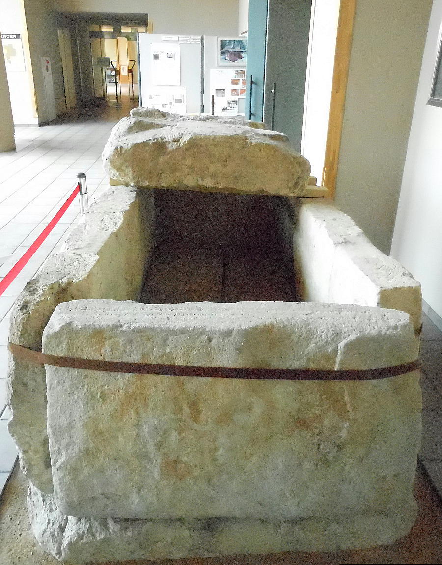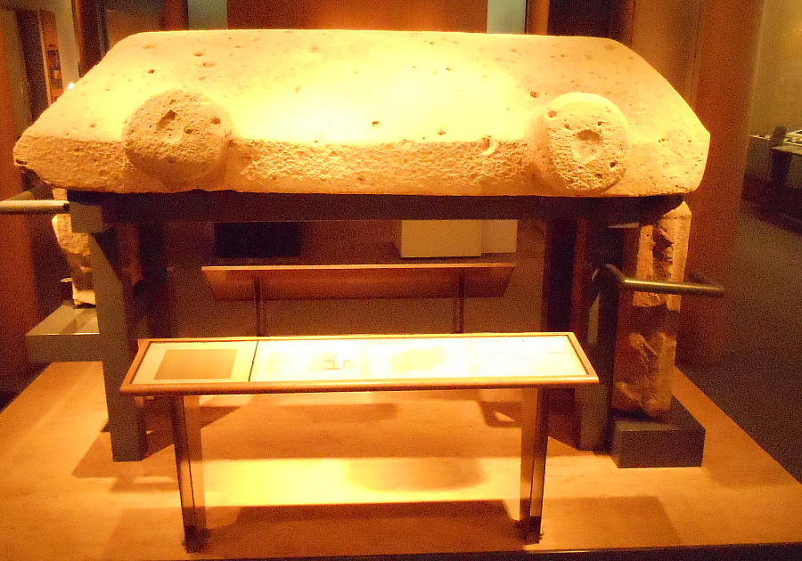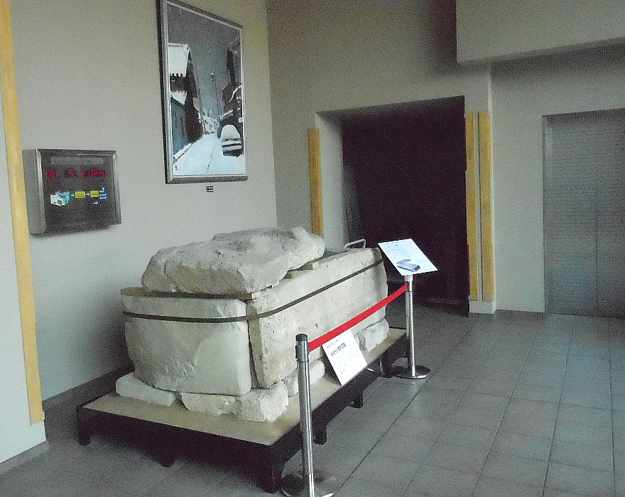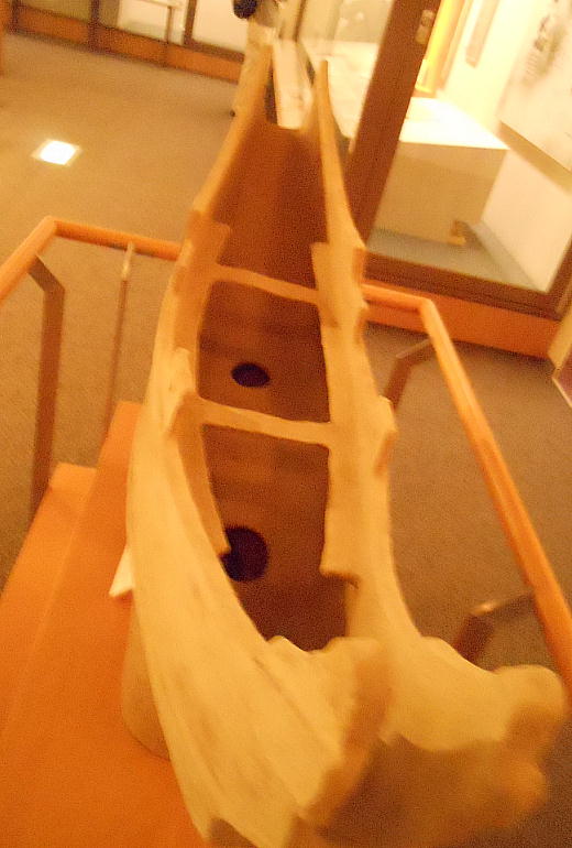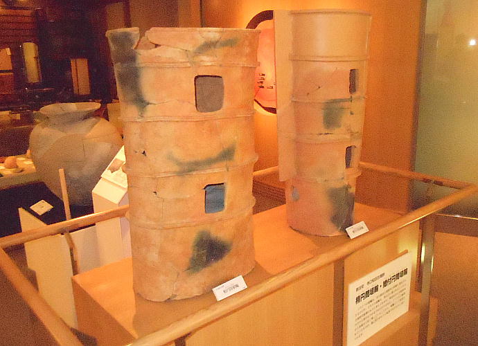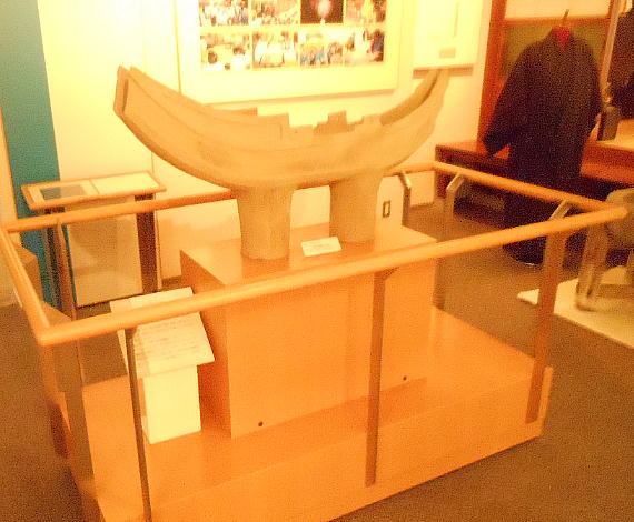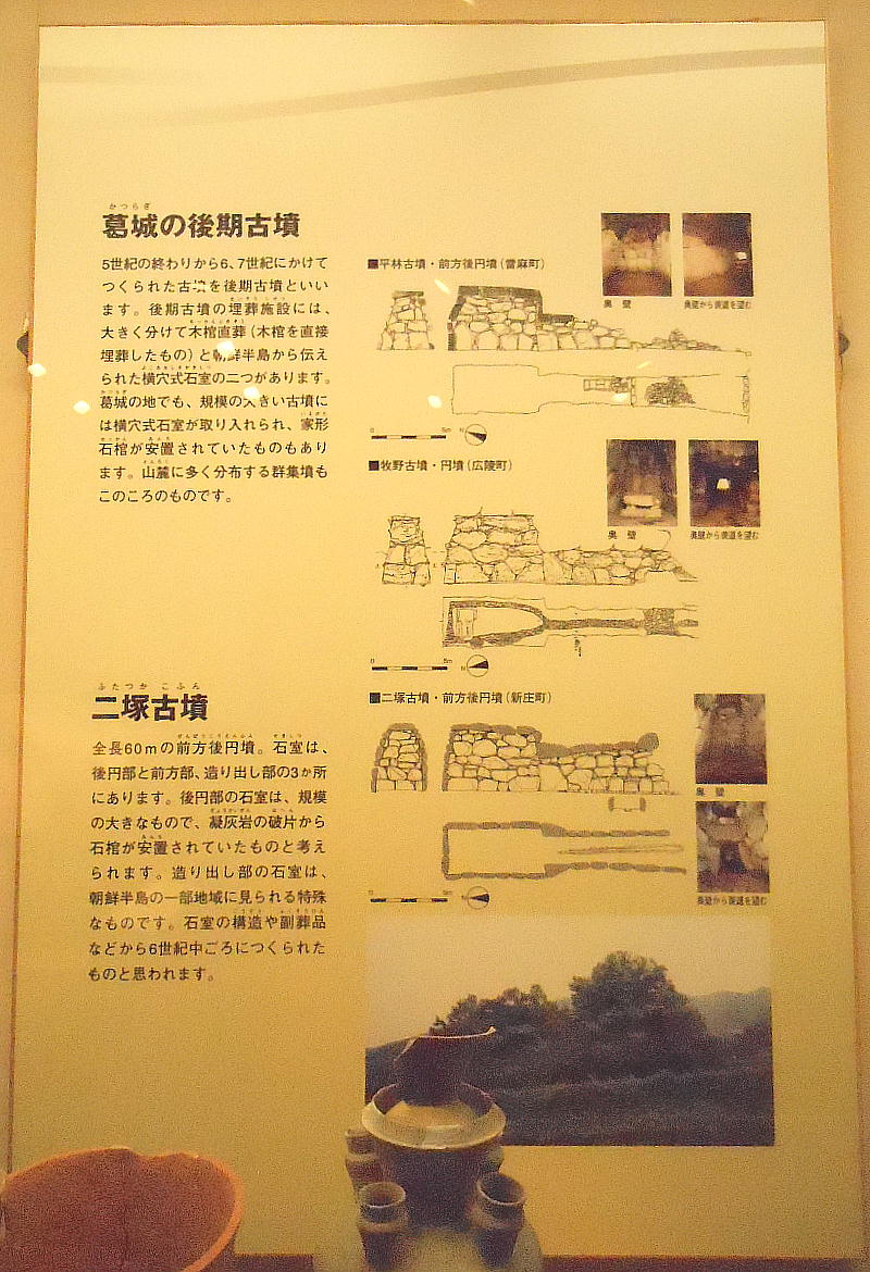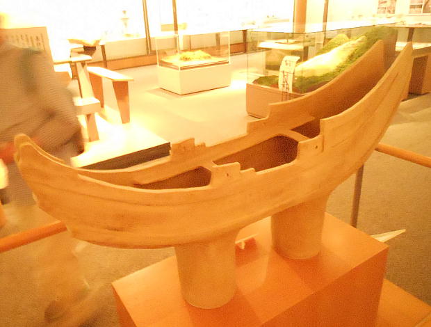 日。資料館に入ると、正面に「島ノ山1号墳」から出土した実物大の組合せ式「家形石棺」が置かれ、また、館内に種々