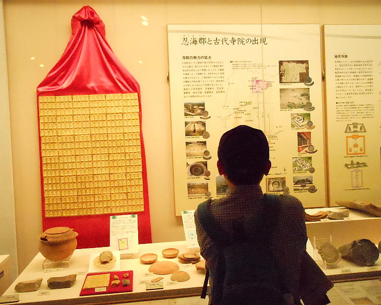 現地説明会にきた折、二光寺廃寺から出た「せん仏」がここに展示してあり、説明会を聞いた後に3人でここに寄った。