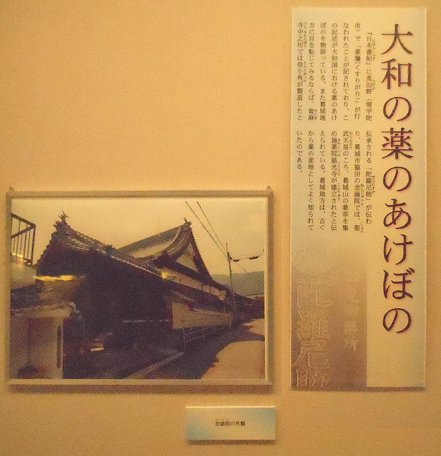 また、葛城市脇田の念誦院では、聖武天皇のころ、葛城山の薬草を集め施薬院が建立されたという伝承も