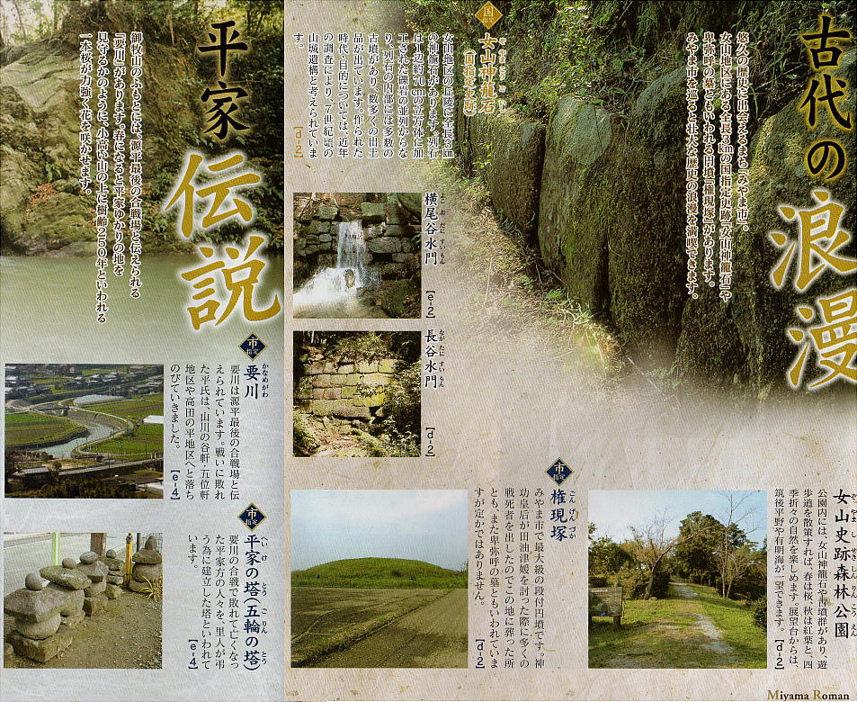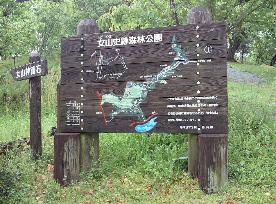 やま)−> ぞぉやま(じょやま) −> ぞやま、との音便だという。この女山に、山を包囲する形で、列石(神籠石)が築かれ