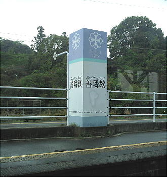 途中の駅で見た新興宗教(だと思う)の看板。「善隣教」だって。雨森芳州の「善隣外交」を思い出して思わずシャッタ