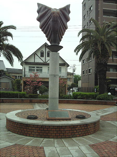 駅前広場のモニュメント。まだ卑弥呼健在の頃、作られたもののようだ。