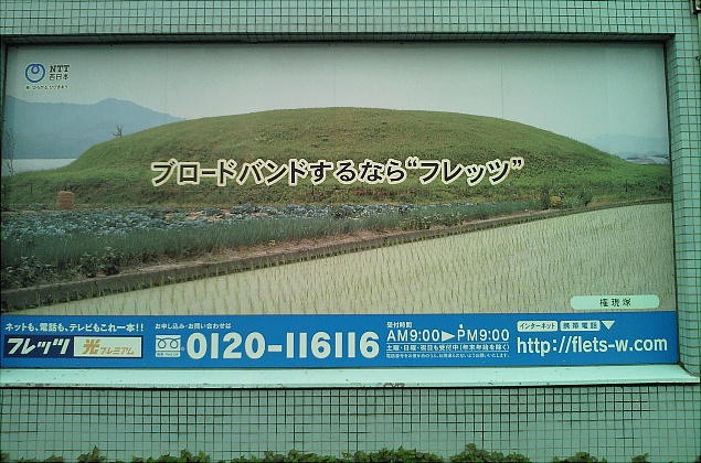 歩いて行く途中のNTTの建物にも権現塚古墳の写真があった。