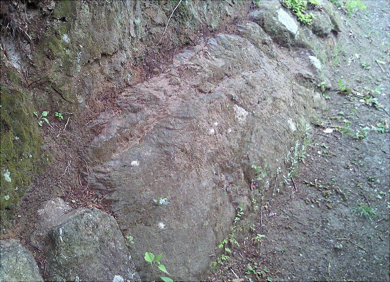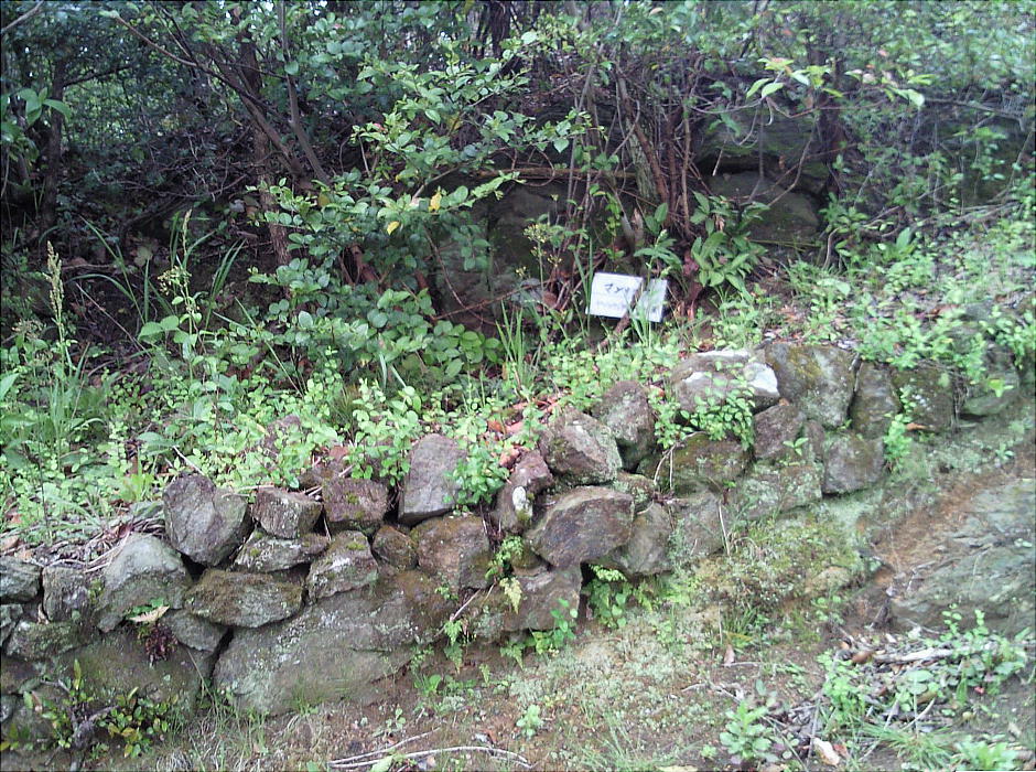 石の場合、西側山麓部から古塚山頂を囲むように列石・水門が続いている。