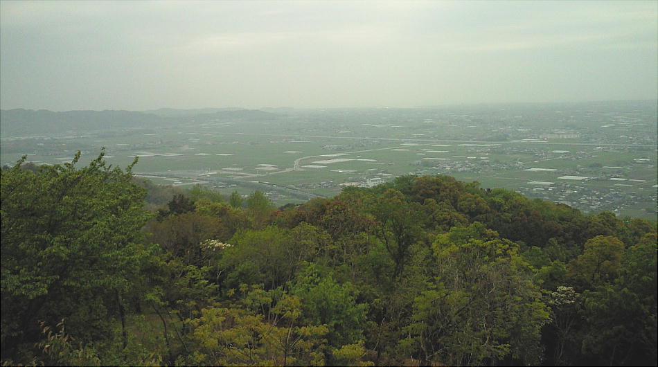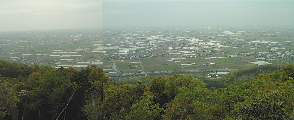公園入口へ戻って、神護石とは違う方角に展望台が作ってある。ここに昇ると瀬高の町(みやま市街)が一望できる。