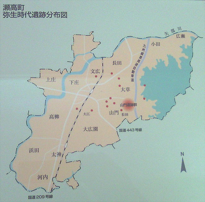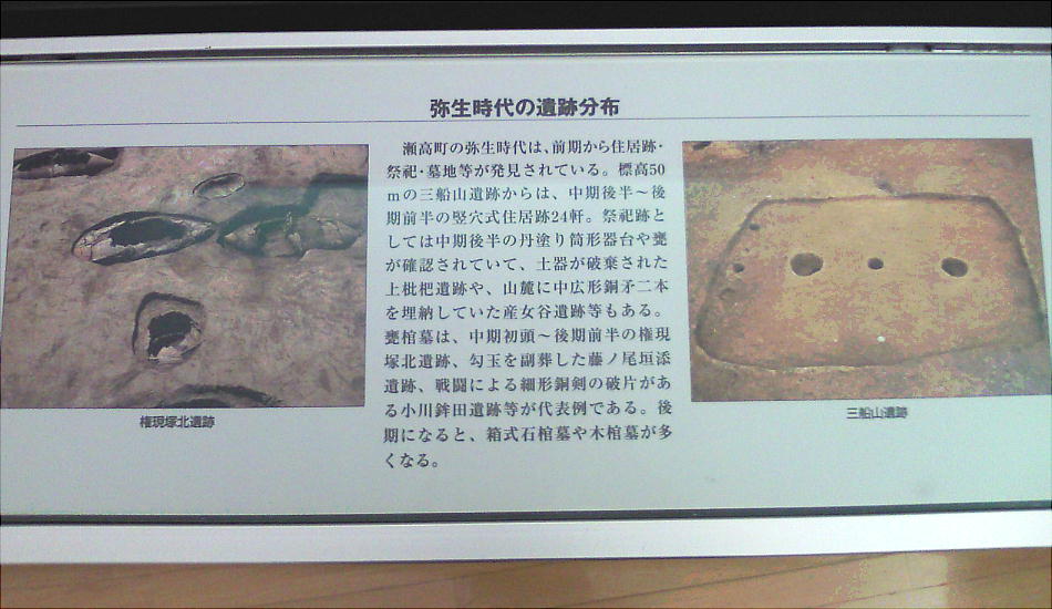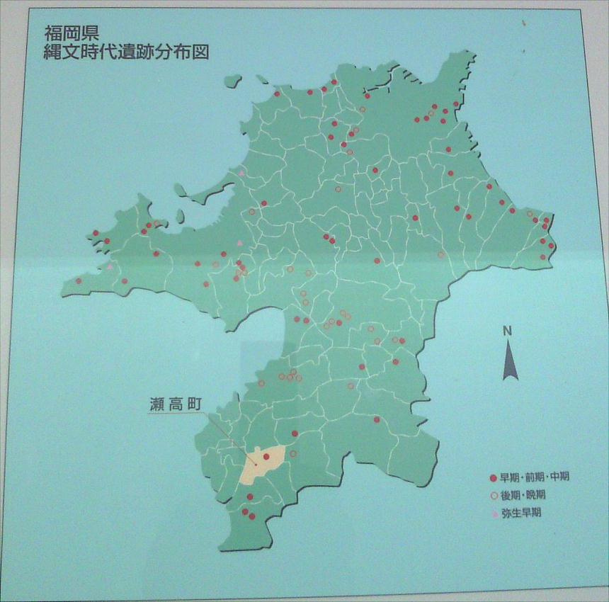 瀬高町の弥生時代は、前期から住居跡・祭祀跡・墓地等が発見されている。標高50mの三船山遺跡からは、中期後半〜後期前半の
