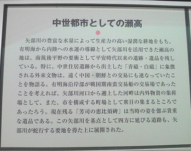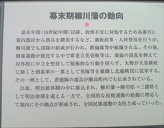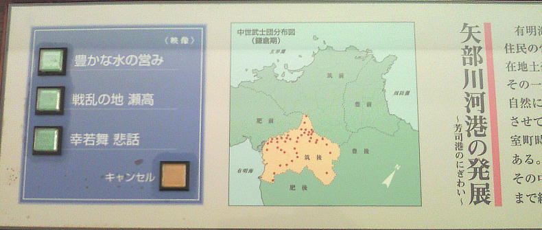 常設展示室では、みやま市の中でも瀬高地区の歴史的遺品について展示しています。内容としては、「矢部川」と国指定史跡「女山神