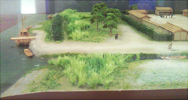 縄文時代中期から奈良時代に至る重層遺蹟として知られる「大道端遺蹟」は、沖積平野を耕地として開墾していった古代人の足跡を