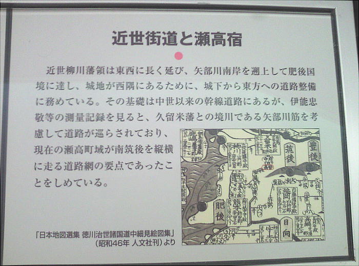調査の起点を置くなど、瀬高は南筑後の拠点として、特に肥後街道と長崎街道の連結路として、他藩にも知られた宿駅であった。