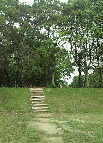 木の階段の手前を掘り下げた土で、堤防を築いたのだそうだ。