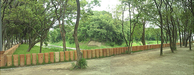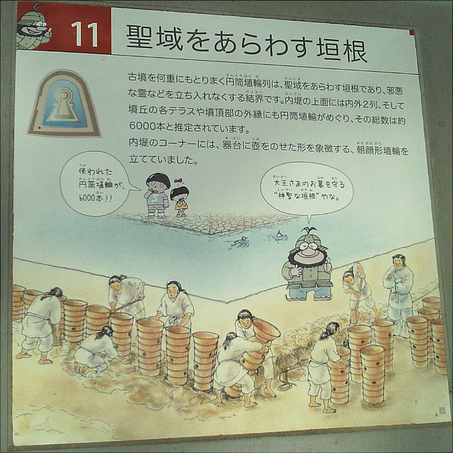 円筒埴輪は古墳全域をとりまいていたんですなぁ。これだけ復元しようと思ったら大変やで。どこに頼んだんやろう。