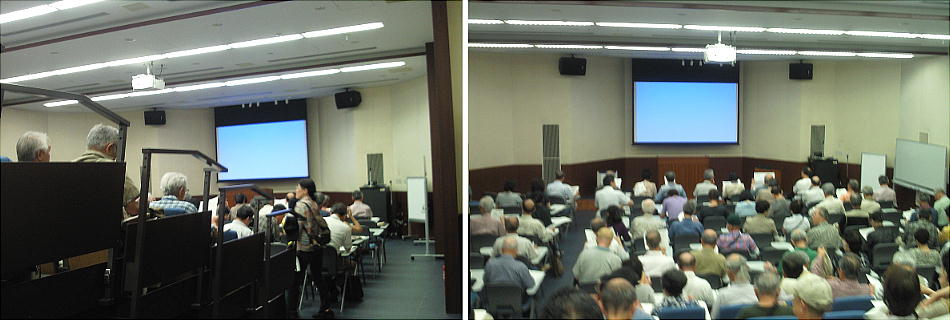 150人定員の部屋だったが、所々空席があったので130人〜140人くらいの聴衆だろう。