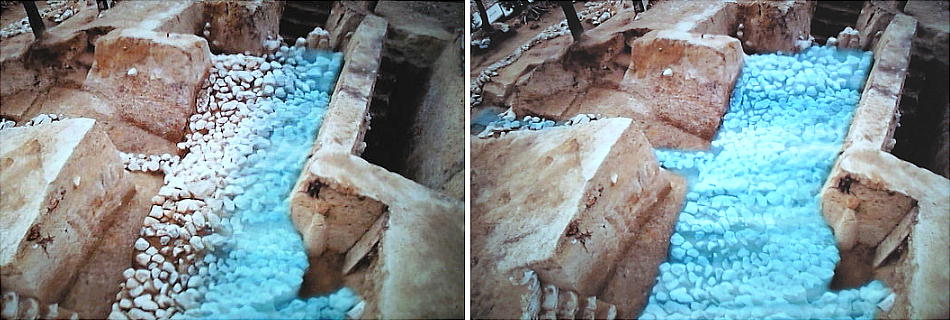 上は排水溝を、溜まった水が流れていく様子のCG