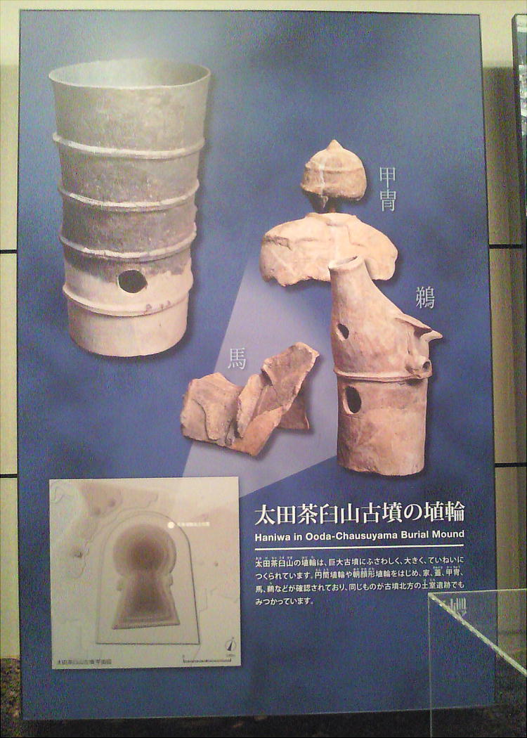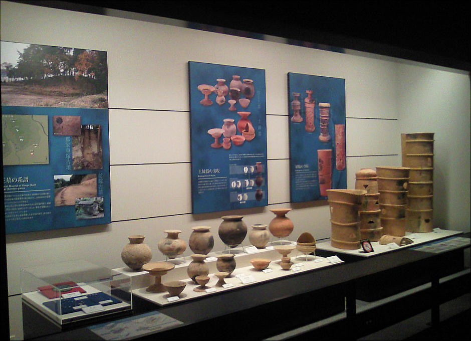 は、形象埴輪にいろいろな彩色が施されている。 埴輪は、古墳の憤丘や造り出しなどに立て並べられた。 埴輪は、大きく円筒埴