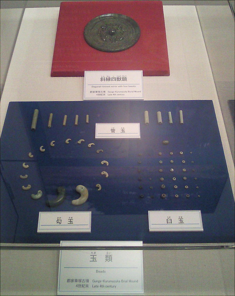 円筒埴輪と最古の前方後円墳の副葬品とされる大陸製の三角縁神獣鏡とが、同じ墓からは出土せず、一方が出るともう一方は出な