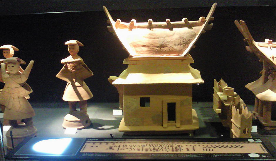 家形埴輪については、死者の霊が生活するための依代(よりしろ)という説と死者が生前に居住していた居館を表したものという