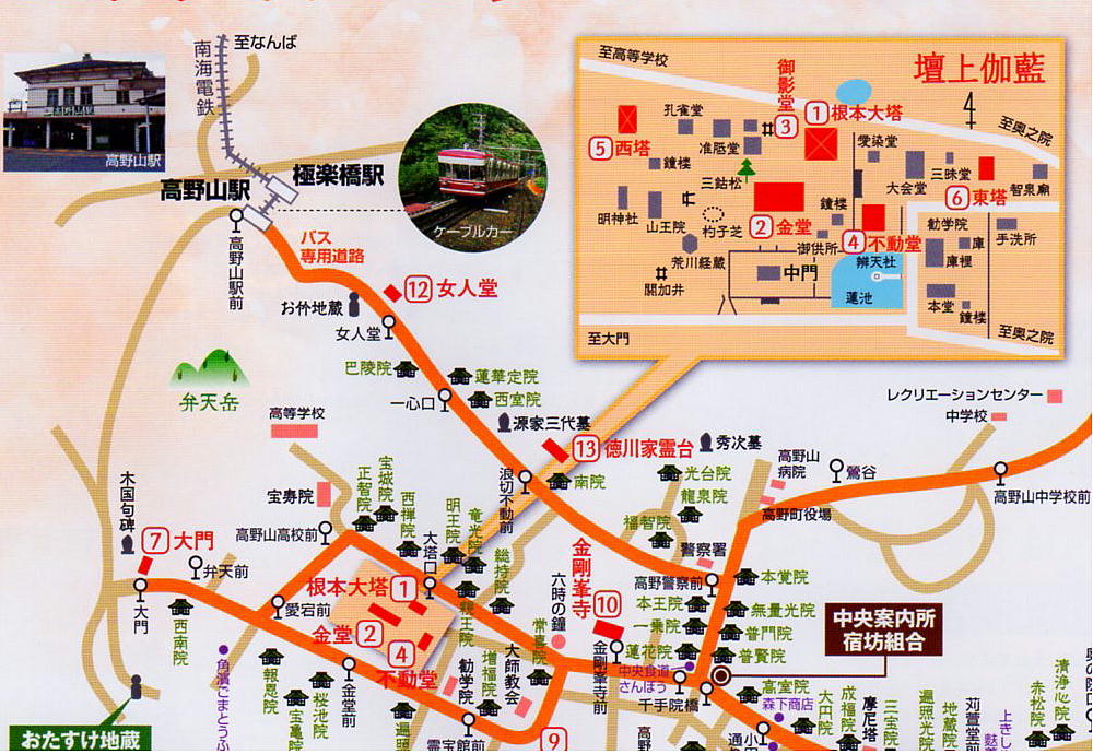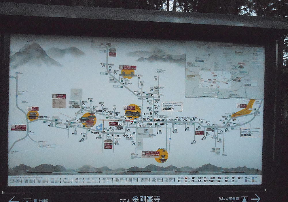 高野山は山頂一帯を切り開いて作った町である。比叡山と並び日本仏教における二大聖地であり、廻りを8つの峰