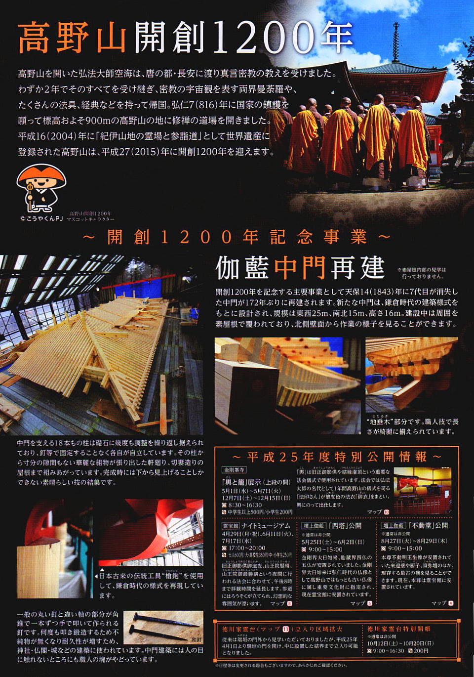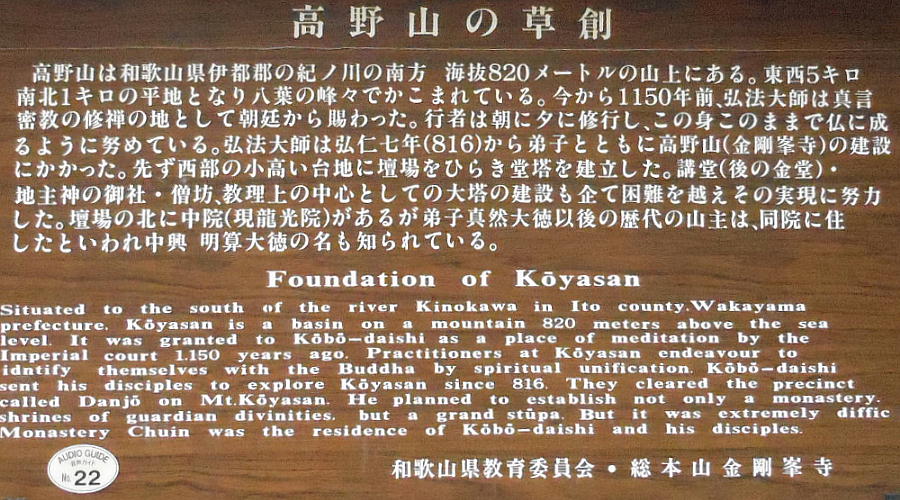 得、日本へ帰国した。弘仁7年(816年)には高野山(和歌山県伊都郡高野町)の地を得て、ここに金剛峯寺を開創、