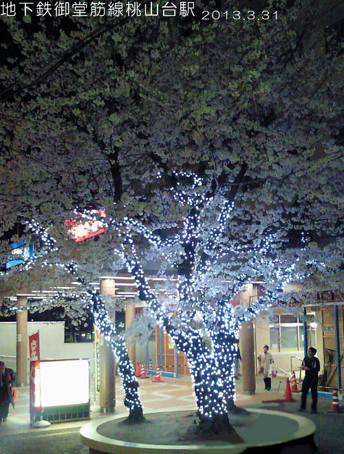 酔って帰って来た桃山台の駅で、夜桜のためのライトアップがしつらえてあった。まるでクリスマスのような。
