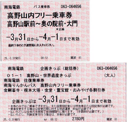 【高野山・世界遺産きっぷ】