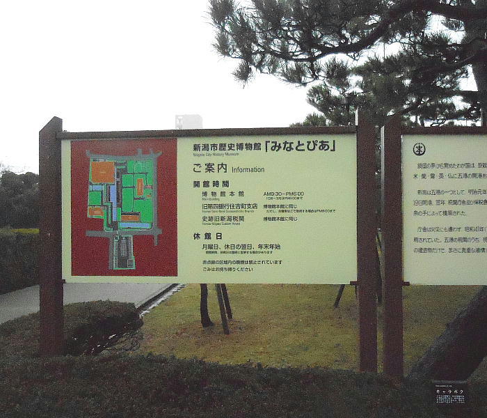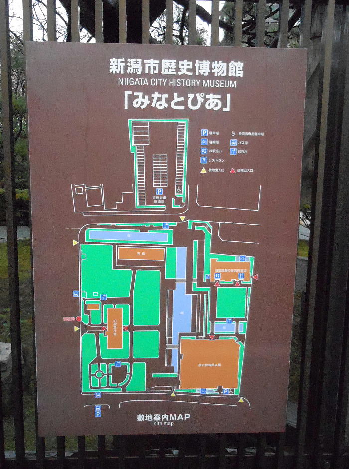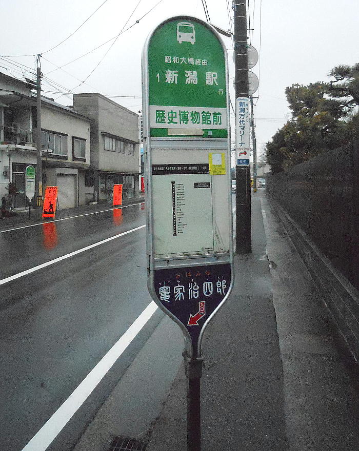 新潟駅からバスに乗って20分ほどで「歴史博物館前」のバス停に到着。あいにくの雨で付近を歩き回るという訳にはいかなかったが、