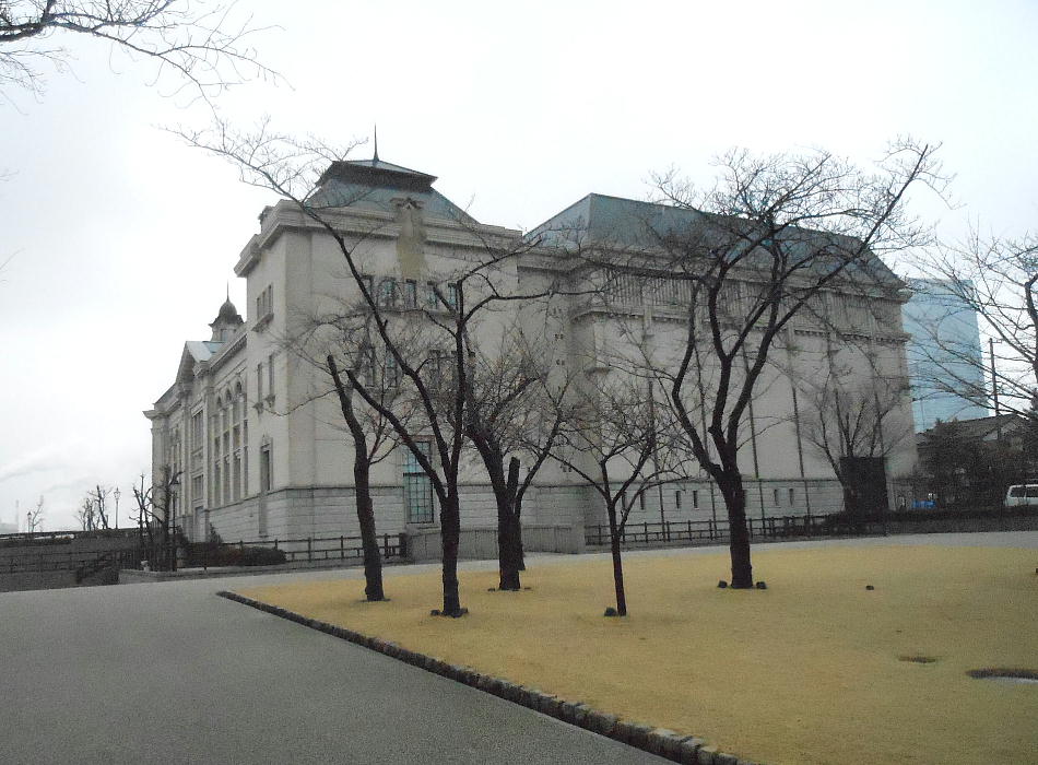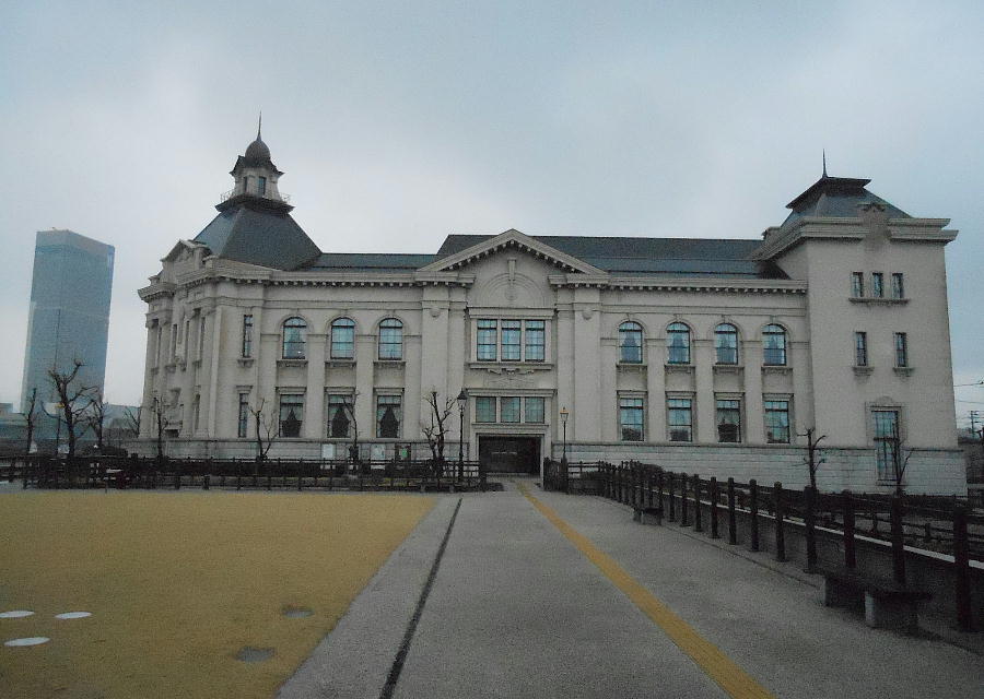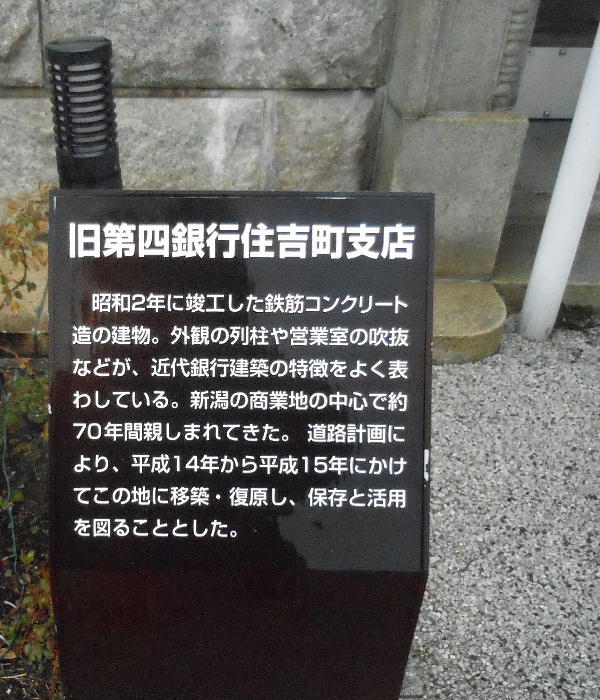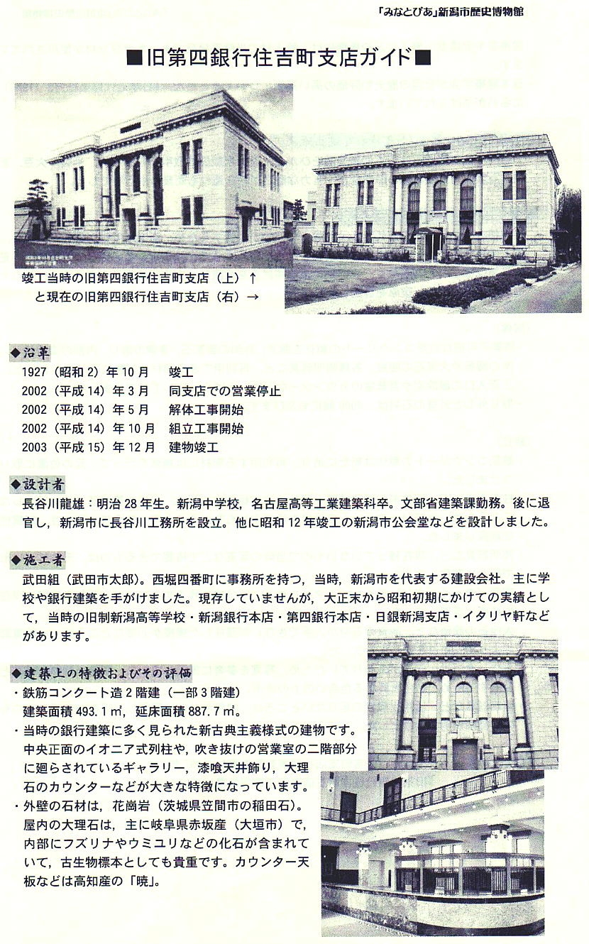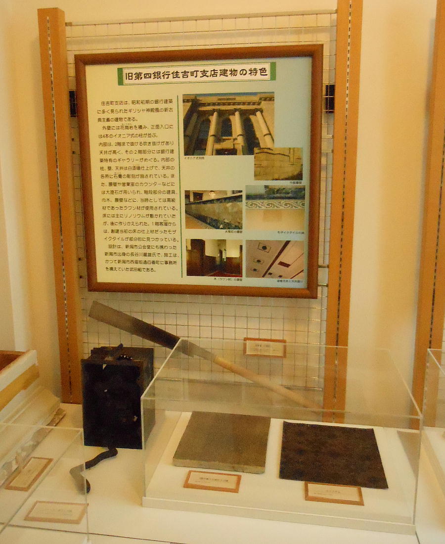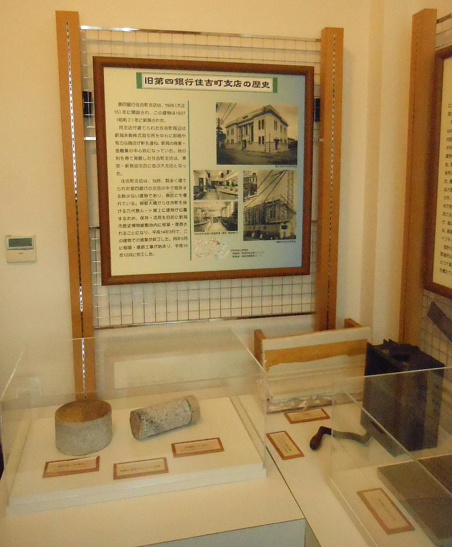 奥の建物が博物館、手前は旧第四銀行住吉町支店の建物。