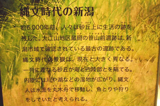 この時代に、新潟市域で人々の営みが始まり、市域の大半を占める越後平野の原形ができます。人々の営みの最初の舞台は、市域