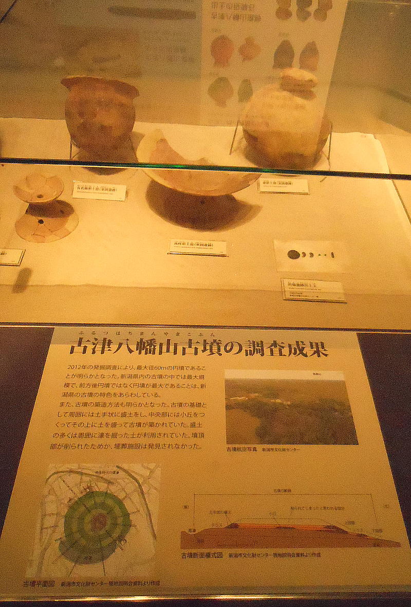 このうち、新津丘陵の古津八幡山遺跡は、日本海側最北の大規模な高地性集落であるほか、北陸地方と東北地方南部の土器文化が共