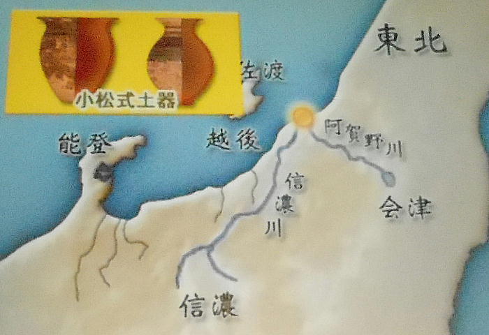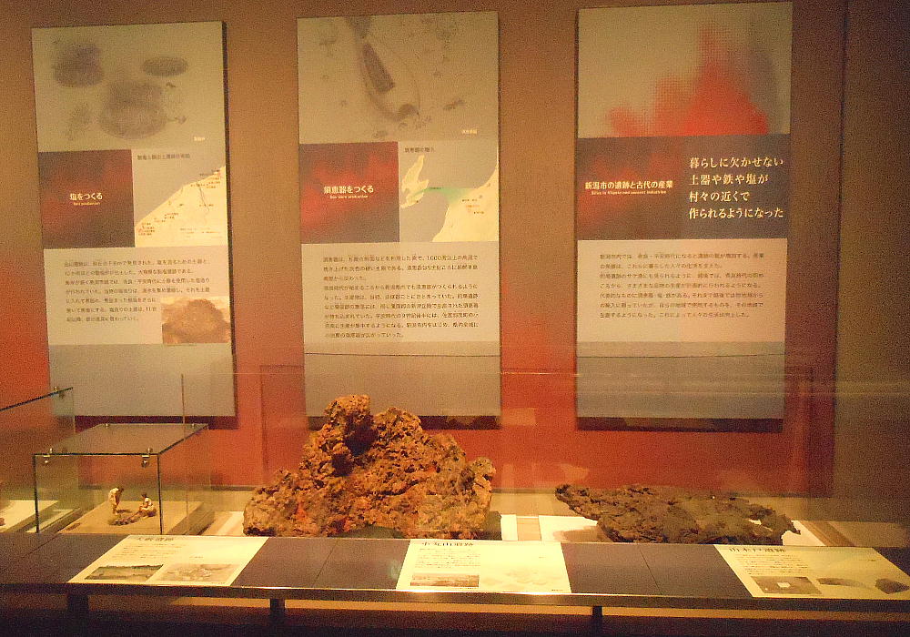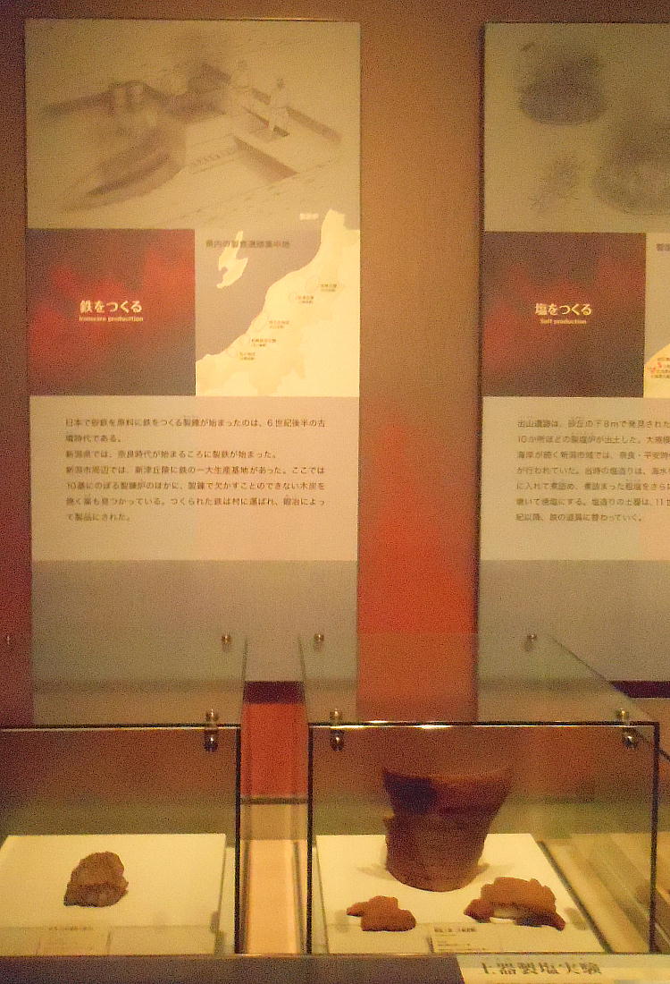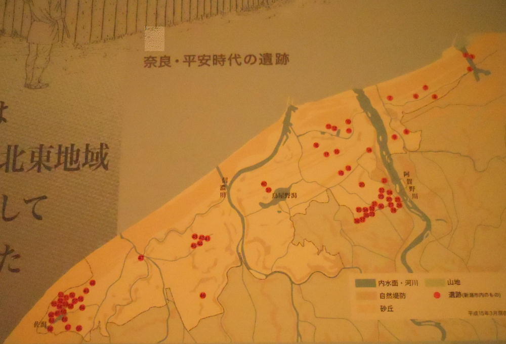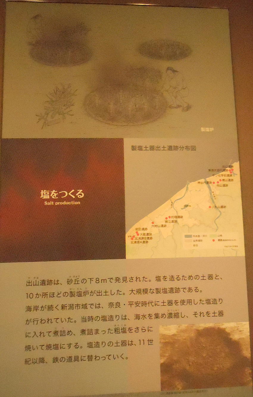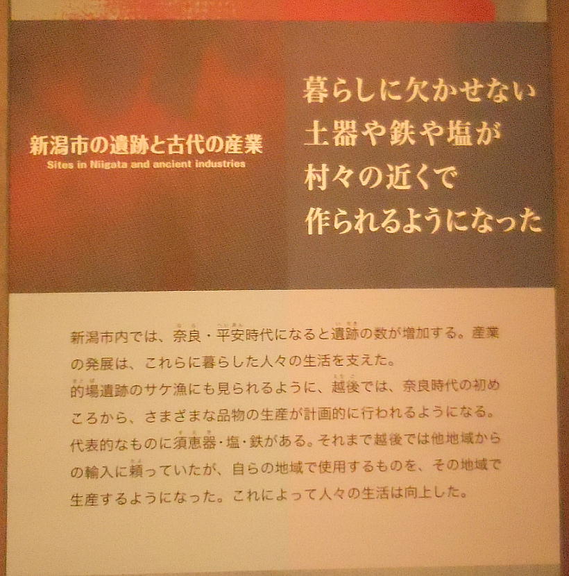 同時期に、新津丘陵に鉄・須恵器を生産する遺跡、信濃川左岸の的場にサケを漁獲加工する遺跡が成立し、海岸の砂丘地帯には塩