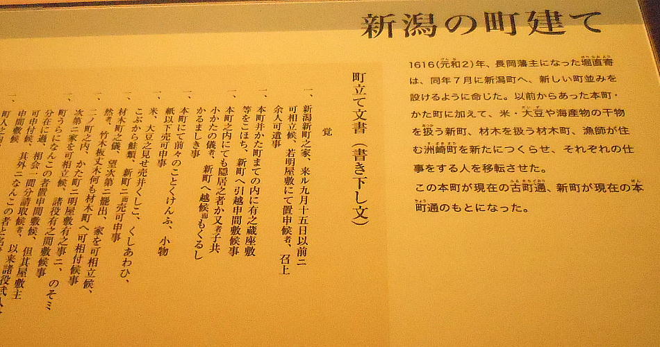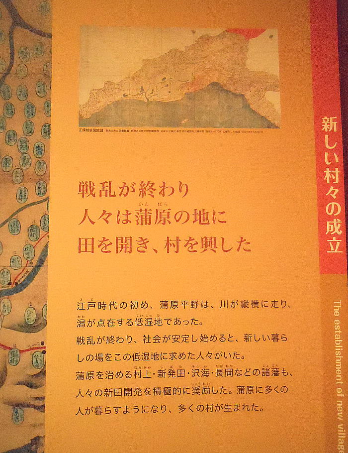 兵農分離が行われ、村役人・町役人を中心にして村・町が運営される時代です。信濃川・阿賀野川下流域の開発が進み、この時代