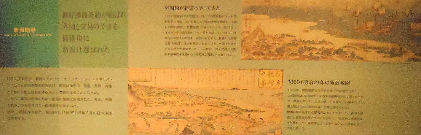 明治元年11月19日(西暦1869年1月1日)、新政府は新潟を開港します。開港場を重視する政府は、3年に水原県を新潟県と改め、新
