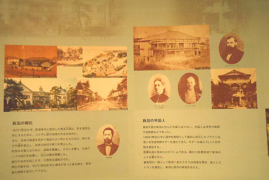 開港場・県都となった新潟町には、開化政策が積極的に進められ、10年までに新潟郵便役所・第四国立銀行・新潟病院・師範学校・
